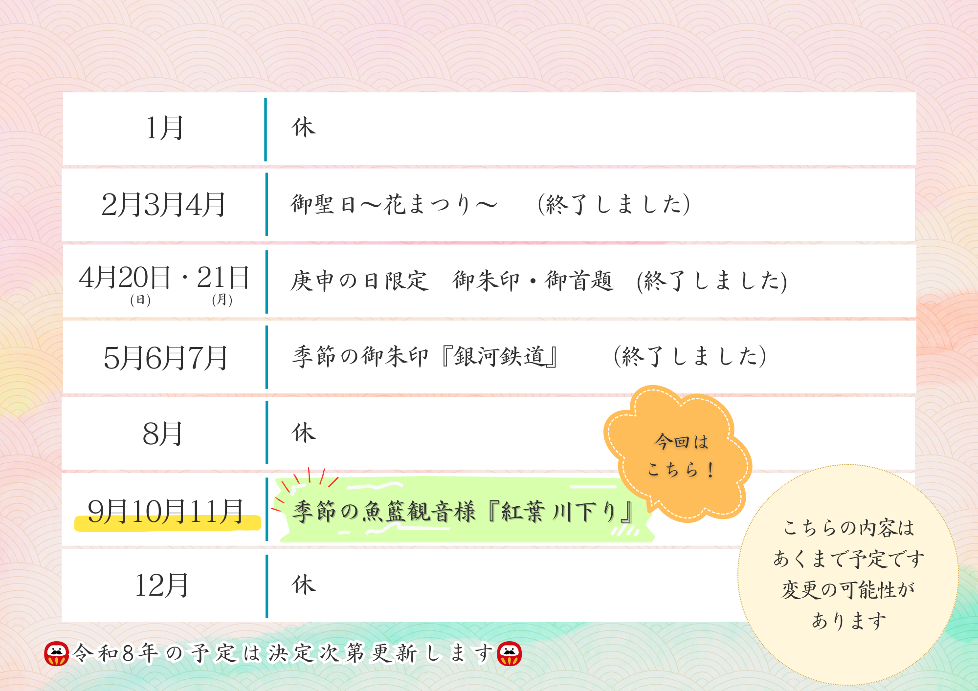 絵入り御朱印年間スケジュール